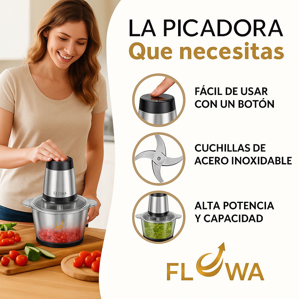 Con la Picadora Eléctrica FLOWA, olvídate de picar a mano, llorar con la cebolla o ensuciar mil utensilios.